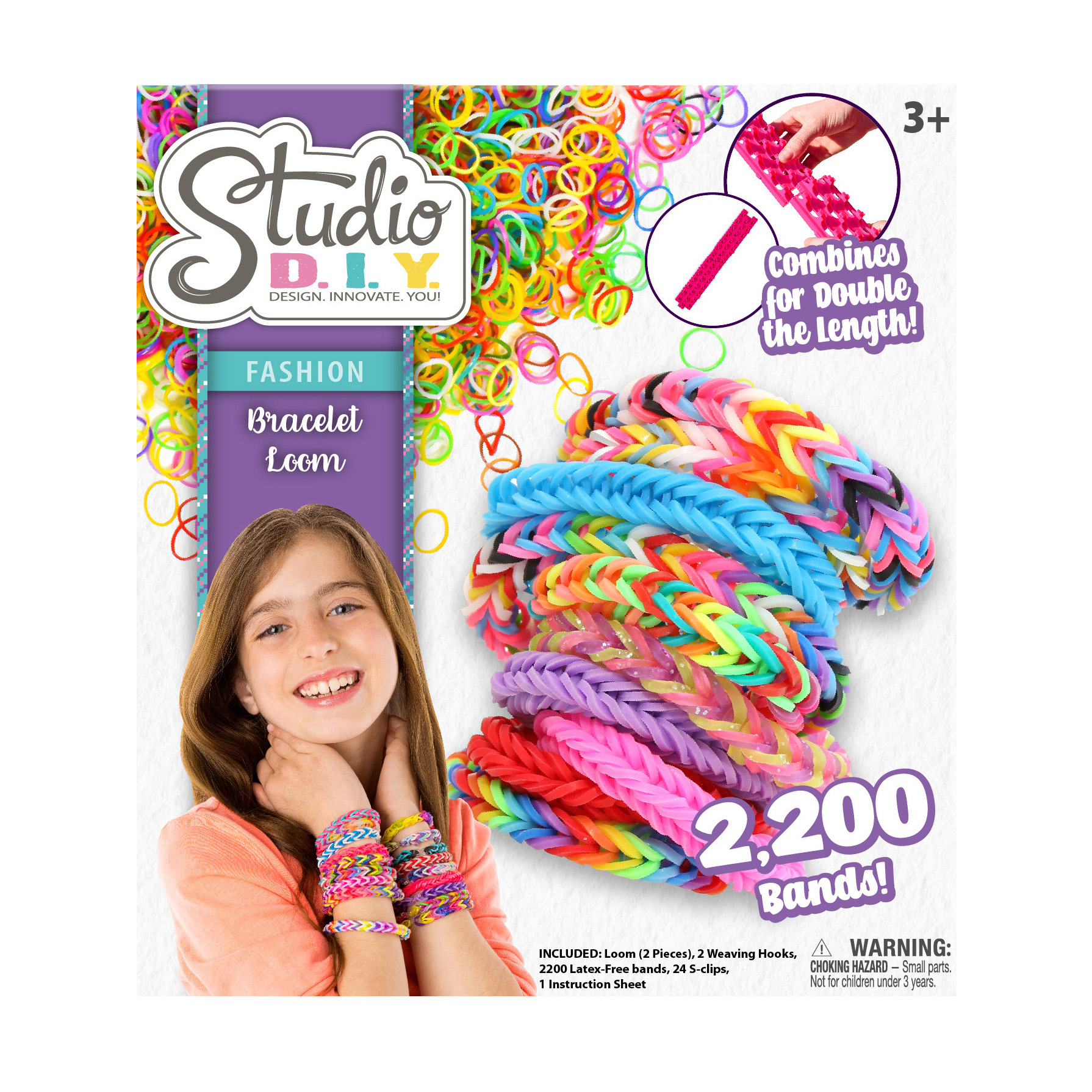 Show off your fabulous sense of style with your own personalized loom bracelets! Create hundreds of bracelets with 2200 vibrant colored bands, 2 connectable looms, 24 S-clips, and 2 weaving hooks! Perfect for bracelet making sleepovers with your girls or adding some design fun to a rainy day! Use the easy-to-follow directions to make dazzling jewelry effortlessly! Bracelet customization is great way to help young girls embrace who they are and grow the skills necessary for development, all while having a blast! This set makes the perfect birthday or holiday gift for daughters, neices, grandchildren, or any young fashionista!